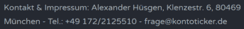 Die Nutzung unserer Webseite ist in ohne Angabe personenbezogener Daten möglich. Bei Nutzung des Kontaktformulars werden Ihre Angaben aus der Anfrage inklusive der von Ihnen dort angegebenen Kontaktdaten zur Bearbeitung bei uns gespeichert. Diese Daten geben wir nicht ohne Ihre Einwilligung weiter. Sollten Sie sich für unser Kontoticker-Angebot registrieren, wird Ihre E-Mail-Adresse zum Zwecke der Information zum Start des Angebotes gespeichert. Die dargestellten Inhalte dürfen ohne Erlaubnis nicht kopiert oder anderweitig verwendet werden. Auf Links zu Seiten Dritter haben wir keinen Einfluss und haften nicht für deren Inhalte.